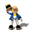 canhestramente o segundo ato, da esquerda para a direita, volta, hesita,
