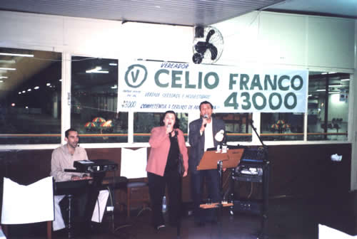 GRUPO ARTE VOCAL - Mara e Chico (Vocal) e Gê (Teclado)Conforme amplamente divulgado, no domingo Dia dos Pais, 08 de Agosto de 2004, tivemos a "Grande Festa de Lançamento da Candidatura de Celio Franco", no Restaurante Terraço de Araraquara.